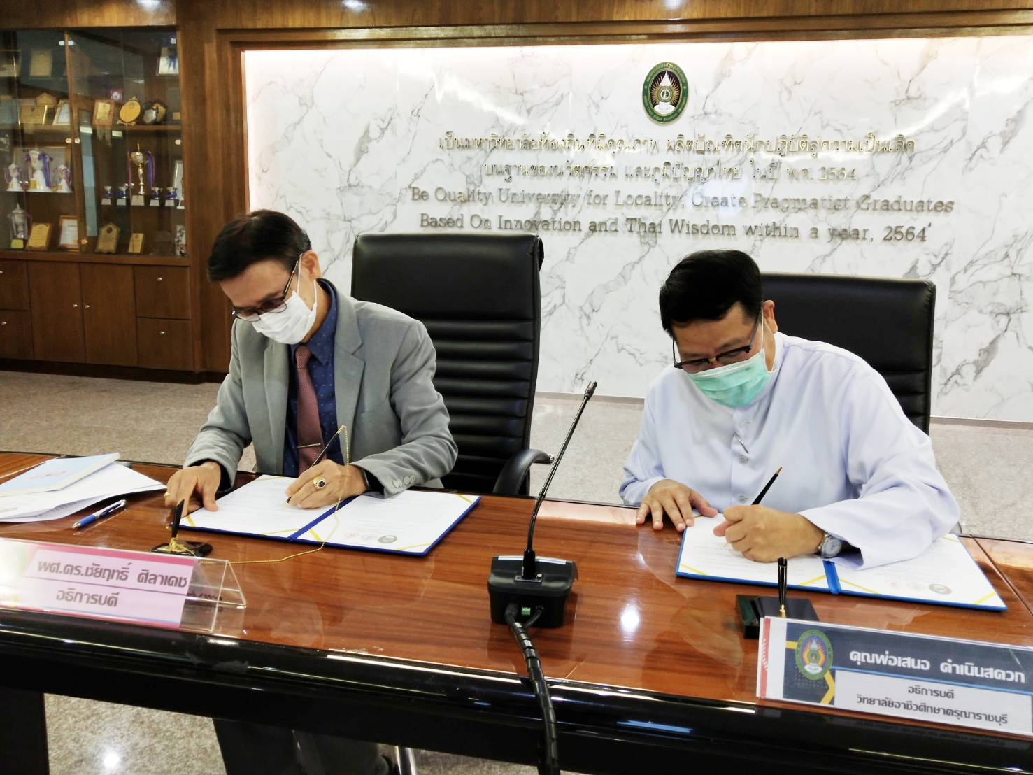 วันที่ 8 พฤศจิกายน 2565 ผู้ช่วยศาสตราจารย์ ดร.ชัยฤทธิ์ ศิลาเดช อธิการบดีมหาวิทยาลัยราชภัฏหมู่บ้านจอมบึง เป็นประธานพิธีลงนามความร่วมมือทางวิชาการเพื่อพัฒนาศักยภาพให้กับนักศึกษา และแนะแนวส่งเสริมการเรียนต่อเนื่องในระดับปริญญาตรี โดยคณะเทคโนโลยีอุตสาหกรรม และคณะวิทยาการจัดการ มหาวิทยาลัยราชภัฏหมู่บ้านจอมบึง กับวิทยาลัยเทคโนโลยีดรุณาโปลีเทคนิค และวิทยาลัยอาชีวศึกษาดรุณาราชบุรี ณ ห้องประชุมทรัพย์คิรี ชั้น 3 อาคารอำนวยการ