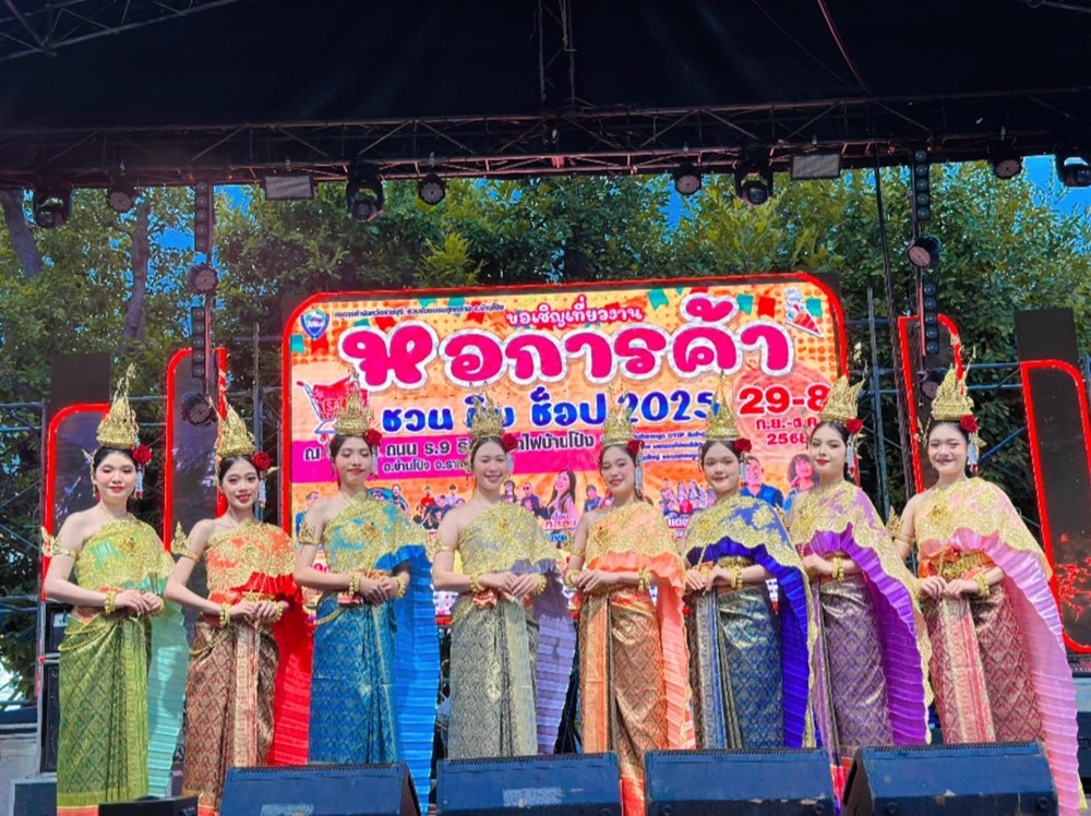 เมื่อวันที่ 29 กันยายน 2568 อาจารย์ธนกฤต สาขะจันทร์ รองผู้อำนวยการสำนักศิลปะและวัฒนธรรม มหาวิทยาลัยราชภัฏหมู่บ้านจอมบึง ได้นำนักศึกษาชมรมศิลปะและวัฒนธรรม เข้าร่วมเผยแพร่การแสดงทางวัฒนธรรมอันงดงามในงาน “หอการค้า ชวน ชิม ช็อป 2568” ณ ถนน ร.9 ริมทางรถไฟบ้านโป่ง จังหวัดราชบุรี ที่จัดโดยหอการค้าจังหวัดราชบุรี