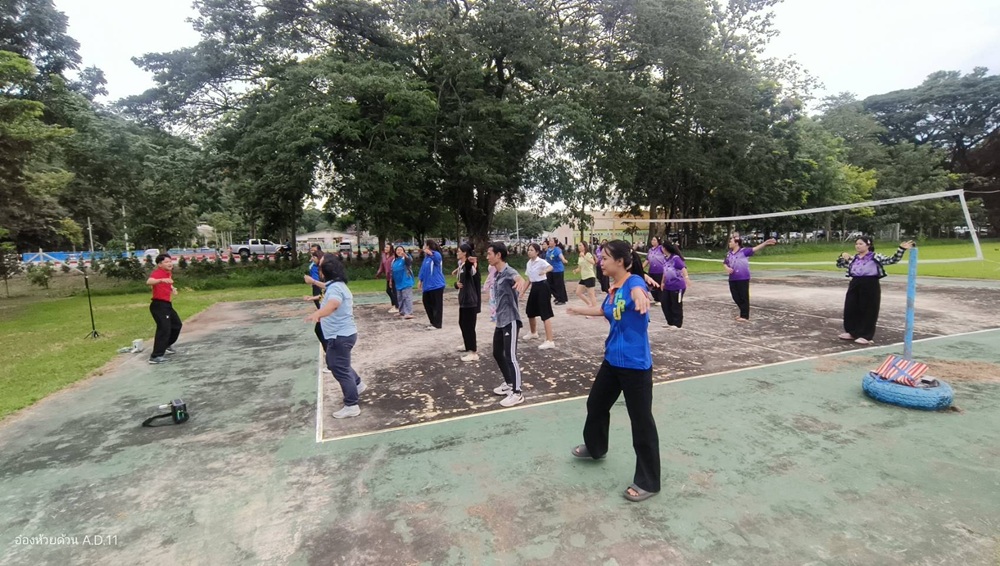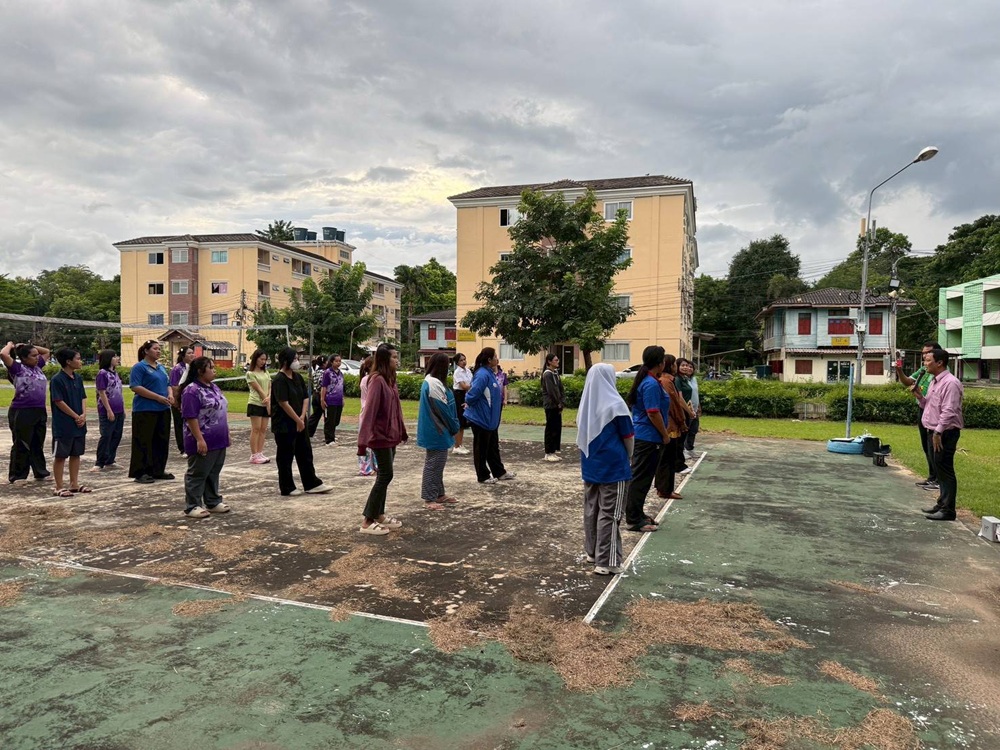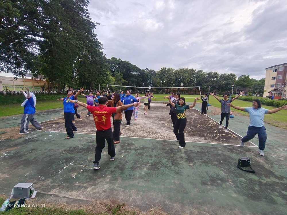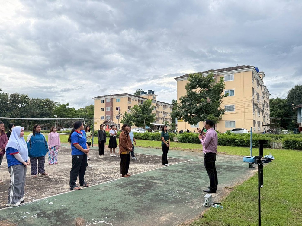 เมื่อวันที่ 1 ตุลาคม 2568 อ.ดร.บุรินทร์ นรินทร์ รองอธิการบดีมหาวิทยาลัยราชภัฏหมู่บ้านจอมบึง เป็นประธานเปิดกิจกรรม “สลายไขมันวันพุธ ไปให้สุดกับแอโรบิคหอใน” ณ สนามวอลเลย์บอลหอใน โดยนักศึกษาชั้นปีที่ 4 สาขาวิชามวยไทยศึกษาและพลศึกษาเป็นผู้นำเต้นแอโรบิค