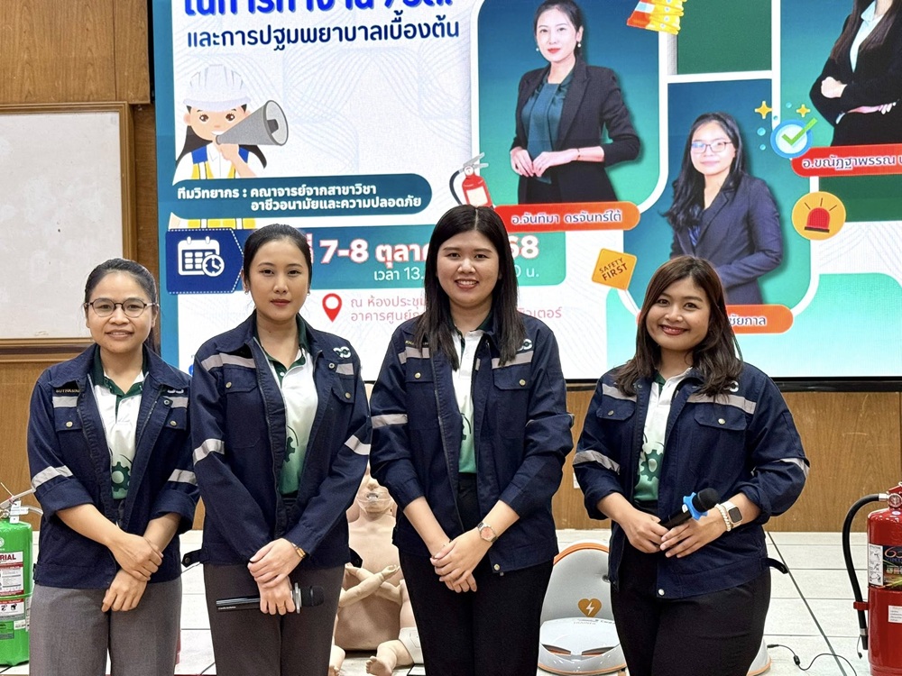 ศูนย์สหกิจศึกษาจัดอบรมเตรียมความพร้อมให้แก่นักศึกษาทั้ง 11 สาขาวิชาที่ลงทะเบียนเรียนรายวิชาเตรียมสหกิจศึกษา ภาคเรียนที่ 1 ปีการศึกษา 2568 ในหัวข้อ "ความปลอดภัยในการทำงาน/5 ส. และการปฐมพยาบาลเบื้องต้น" ในวันที่ 7-8 ตุลาคม 2568 ณ ห้องประชุมฉัตรฟ้า ชั้น 4 อาคารศูนย์ภาษาและศูนย์คอมพิวเตอร์ โดยคณาจารย์จากสาขาวิชาอาชีวอนามัยและความปลอดภัย อาจารย์จันทิมา ดรจันทร์ใต้, อาจารย์ขณัฏฐาพรรณ ปานณรงค์, อาจารย์อมลรดา รงค์ทอง และอาจารย์สุธาสินี พิชัยกาล เป็นวิทยากรถ่ายทอดความรู้ให้แก่นักศึกษาในครั้งนี้