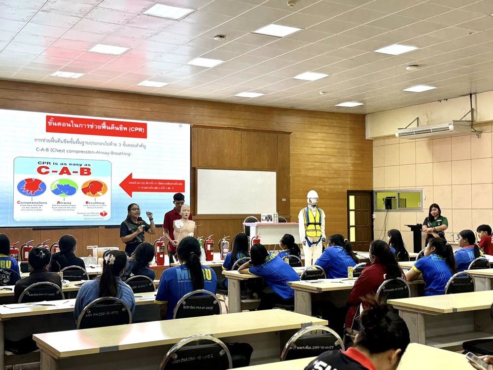 การอบรมครั้งนี้นักศึกษาเรียนรู้เรื่องมาตรฐานความปลอดภัยในสถานประกอบการ การป้องกันการเกิดอุบัติเหตุ การใช้ถังดับเพลิง 5ส. การปฐมพยาบาล การใช้เครื่องมือในการช่วยเหลือ ฝึกปฏิบัติการ CPR และข้อมูลเบื้องต้นเกี่ยวกับ พรบ.คุ้มครองแรงงาน