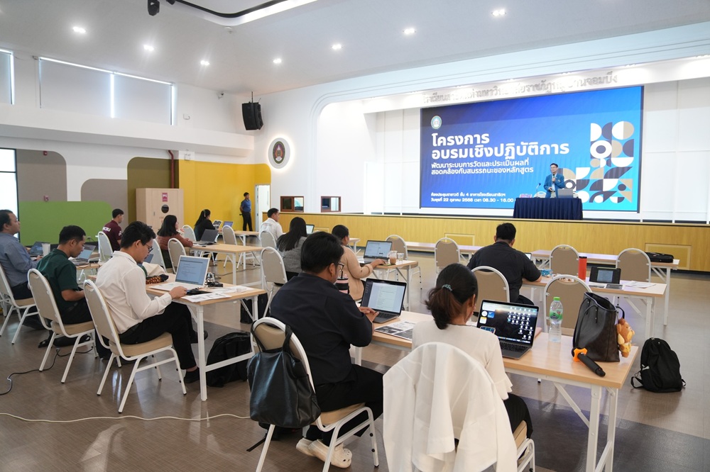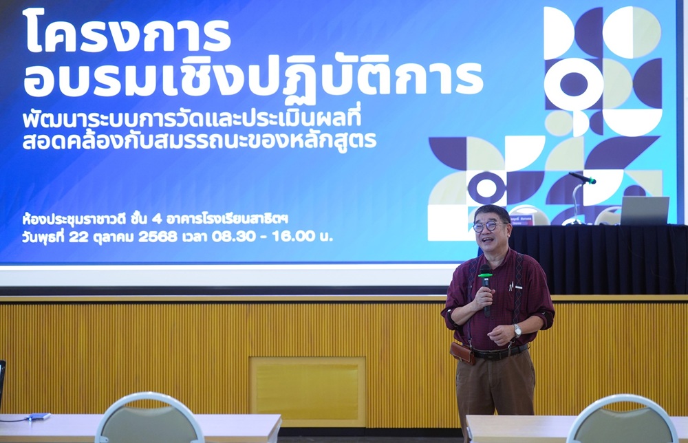 วันที่ 22 ตุลาคม 2568 ผู้ช่วยศาสตราจารย์ อรรถพล อุสายพันธ์ รักษาราชการแทนอธิการบดี มหาวิทยาลัยราชภัฏหมู่บ้านจอมบึง เป็นประธานในพิธีเปิด โครงการอบรมเชิงปฏิบัติการ “พัฒนาระบบการวัดและประเมินผลที่สอดคล้องกับสมรรถนะของหลักสูตร สำหรับครูโรงเรียนสาธิตฯ” ณ ห้องประชุมราชาวดี โรงเรียนสาธิตแห่งมหาวิทยาลัยราชภัฏหมู่บ้านจอมบึง
