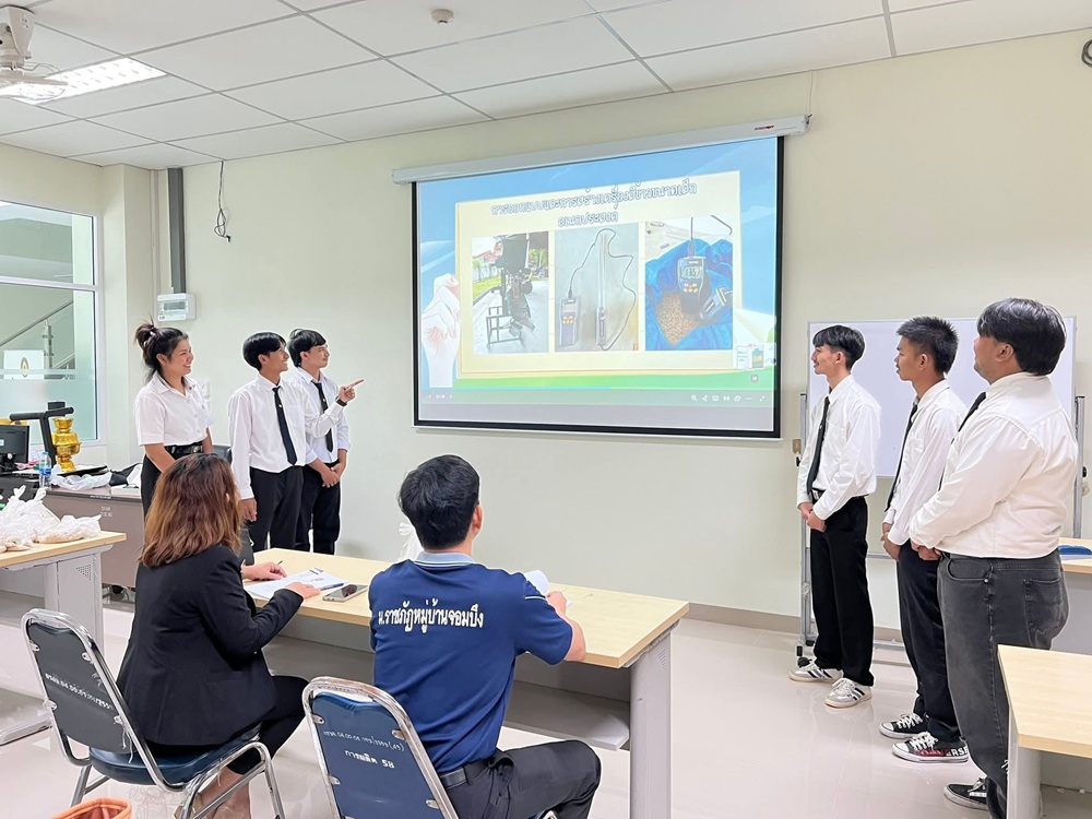 เมื่อวันที่ 4 พฤศจิกายน 2568 ณ อาคารปฏิบัติการเทคโนโลยีอุตสาหกรรม คณะเทคโนโลยีอุตสาหกรรม มหาวิทยาลัยราชภัฏหมู่บ้านจอมบึง นักศึกษาสาขาเทคโนโลยีอุตสาหกรรมการผลิต คณะเทคโนโลยีอุตสาหกรรม ได้ดำเนินโครงงานวิจัยเรื่อง “การพัฒนาเครื่องสีข้าวขนาดเล็กเอนกประสงค์” ภายใต้การดูแลของ ผู้ช่วยศาสตราจารย์ ดร.วีระยุทธ สุริคำ และ ผู้ช่วยศาสตราจารย์ อรนุช จินดาสกุลยนต์