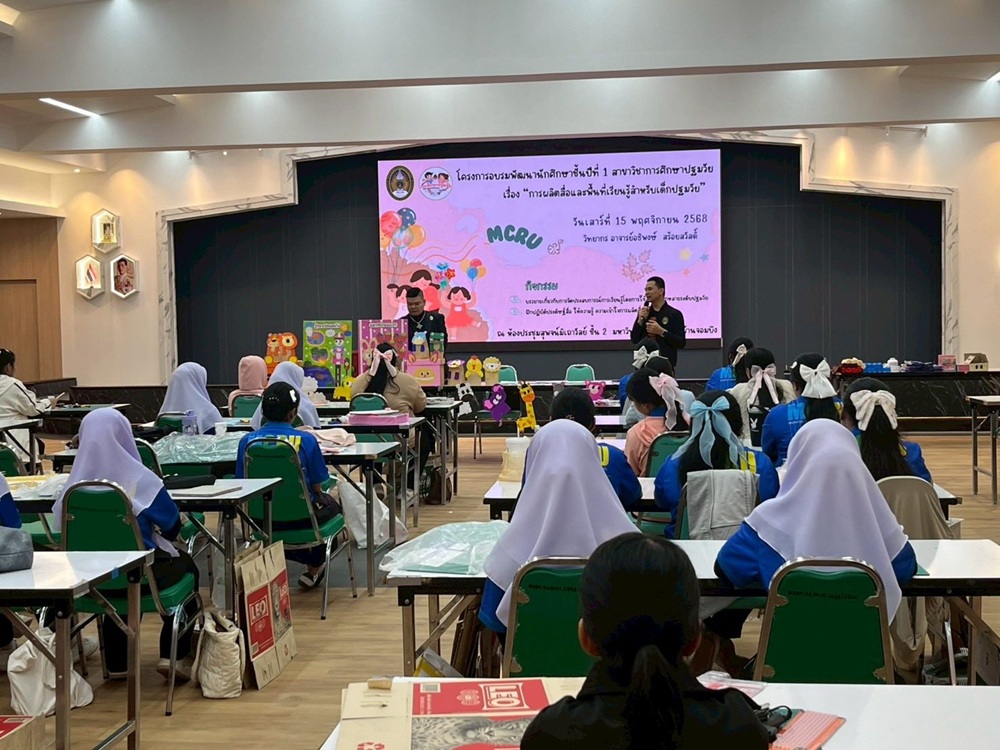 สาขาวิชาการศึกษาปฐมวัย คณะครุศาสตร์ มหาวิทยาลัยราชภัฏหมู่บ้านจอมบึง ได้จัด โครงการพัฒนาคุณภาพนักศึกษา สาขาวิชาการศึกษาปฐมวัย ชั้นปีที่ 1 ประจำปีงบประมาณ พ.ศ. 2569 โดยมีกิจกรรมที่ 1 เรื่อง “การผลิตสื่อและพื้นที่เรียนรู้สำหรับเด็กปฐมวัย”