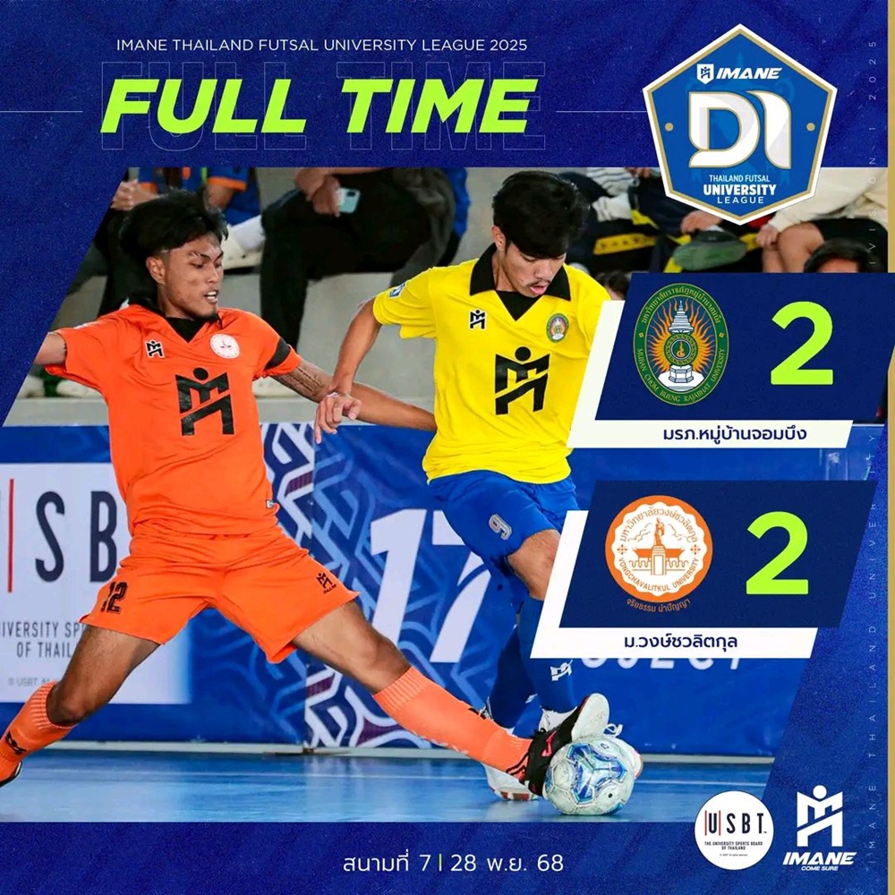 มรภ.หมู่บ้านจอมบึง ไล่ตีเสมอ ม.วงษ์ชวลิตกุล 2-2 ศึก “IMANE THAILAND FUTSAL DIVISION 1 UNIVERSITY LEAGUE 2025” นัดที่ 7