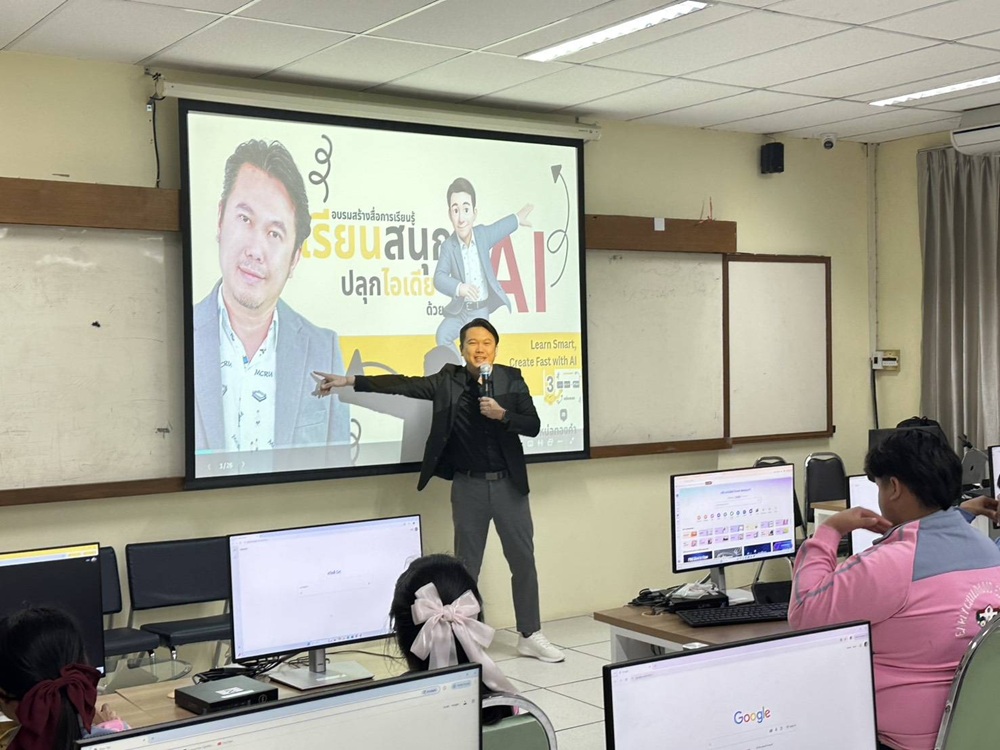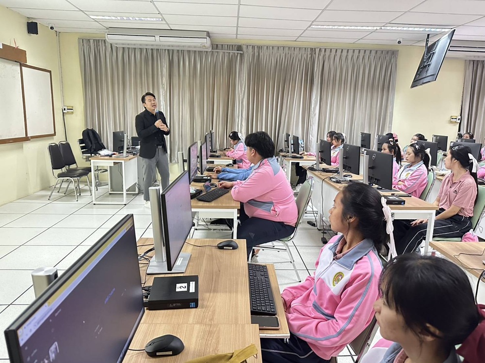 วันที่ 30 พฤศจิกายน 2568 สาขาวิชาการศึกษาปฐมวัย คณะครุศาสตร์ มหาวิทยาลัยราชภัฏหมู่บ้านจอมบึง จัดโครงการ พัฒนาคุณภาพนักศึกษา #ครูปฐมวัยพันธุ์บึง โดยกิจกรรมที่ 2 ภายใต้หัวข้อ Smart Kids with AI : เด็กปฐมวัยกับเทคโนโลยี เพื่อให้นักศึกษาชั้นปีที่ 2 ได้เรียนรู้และพัฒนาทักษะด้านเทคโนโลยีในการสร้างสื่อการเรียนรู้สำหรับเด็กปฐมวัย ณ ห้องปฏิบัติการคอมพิวเตอร์ อาคารศูนย์ภาษาและศูนย์คอมพิวเตอร์ มหาวิทยาลัยราชภัฏหมู่บ้านจอมบึง