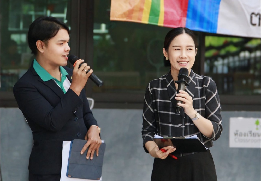 ตัวแทนนักศึกษาสาขา เทคโนโลยีดิจิทัลเพื่อการศึกษา คณะครุศาสตร์ มหาวิทยาลัยราชภัฏหมู่บ้านจอมบึง ได้ร่วมปฏิบัติงานจริงในกิจกรรมภาคสนาม ทำหน้าที่สำคัญทั้งการเชื่อมโยงกิจกรรม การบริหารจัดการงาน การลงทะเบียน และการสื่อสารบนเวที ซึ่งสะท้อนให้เห็นถึงการนำองค์ความรู้จากห้องเรียนไปสู่การปฏิบัติจริงอย่างมีวุฒิภาวะและเป็นมืออาชีพ