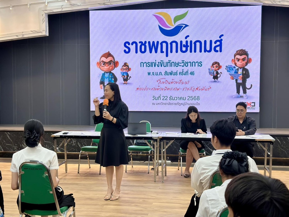 วันที่ 17 ธันวาคม 2568 มหาวิทยาลัยราชภัฏหมู่บ้านจอมบึง โดย ผู้ช่วยศาสตราจารย์ ดร.ดาราวรรณ ญาณะนันท์ ผู้อำนวยการสำนักส่งเสริมวิชาการและงานทะเบียน พร้อมด้วยรองผู้อำนวยการสำนักส่งเสริมวิชาการและงานทะเบียน ได้จัดการประชุม นักศึกษาทีม STAFF เพื่อเตรียมความพร้อมในการดำเนินงานการแข่งขันทักษะวิชาการ พ.จ.น.ก.สัมพันธ์ ครั้งที่ 46 ภายใต้ชื่อ “ราชพฤกษ์เกมส์”