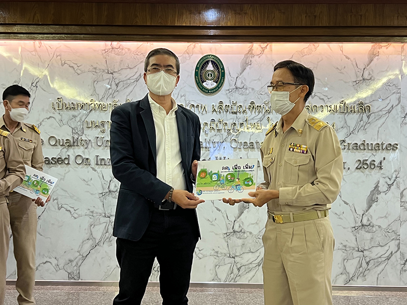 อธิการบดีมหาวิทยาลัยราชภัฏหมู่บ้านจอมบึง มอบป้ายประชาสัมพันธ์ “โครงการรณรงค์ ประชาสัมพันธ์ และสร้างจิตสำนึกในการลดใช้พลังงาน”