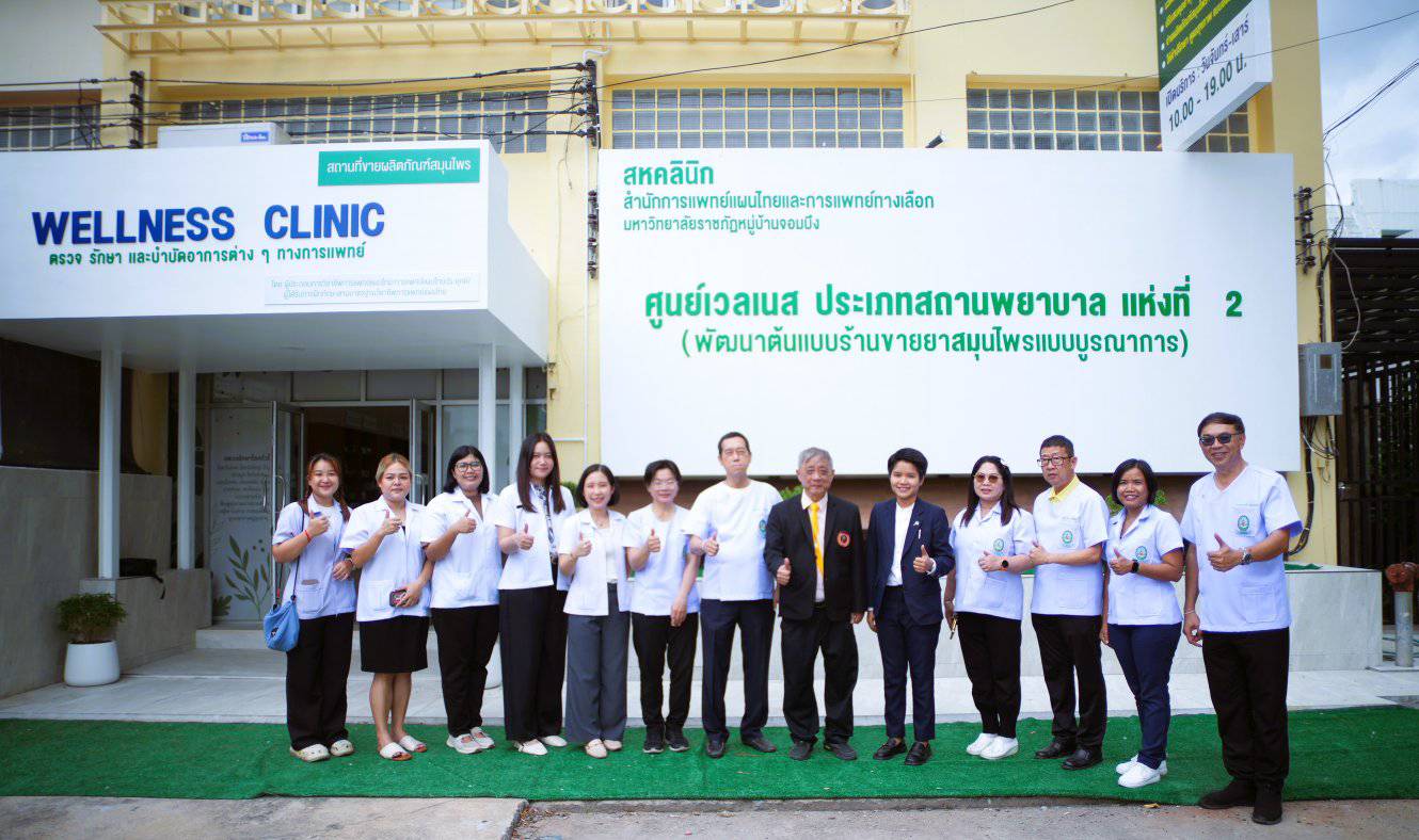 เมื่อวันที่ 26 กันยายน 2568 ผู้ช่วยศาสตราจารย์ ดร.รพีพรรณ กองตูม รองอธิการบดี มหาวิทยาลัยราชภัฏหมู่บ้านจอมบึง พร้อมด้วย อาจารย์ ดร.บารมี ชูชัย คณบดีวิทยาลัยมวยไทยศึกษาและการแพทย์แผนไทย ได้นำคณะ เครือข่ายสมาคมผู้ประกอบการร้านยารวมใจภาคใต้ ภาคตะวันตก ชมรมร้านขายยาจังหวัดราชบุรี และสื่อมวลชน เข้า เยี่ยมชมศูนย์เวลเนส สำนักการแพทย์แผนไทยและการแพทย์ทางเลือก