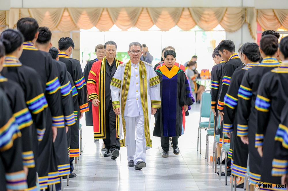 นอกจากนี้ อธิการบดีได้กล่าวให้โอวาทและให้กำลังใจกับบัณฑิตทุกคน พร้อมเน้นย้ำถึงความภาคภูมิใจในความสำเร็จของการศึกษา และความรับผิดชอบในการนำความรู้ ความสามารถ และคุณธรรมไปใช้ในการพัฒนาตนเองและสังคม