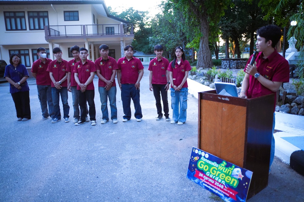 วันที่ 24 มิถุนายน 2568 ผู้ช่วยศาสตราจารย์ ดร.รพีพรรณ กองตูม รองอธิการบดีมหาวิทยาลัยราชภัฏหมู่บ้านจอมบึง เป็นประธานในพิธีเปิดพื้นที่ “Go Green Garden” บริเวณหน้าคณะเทคโนโลยีอุตสาหกรรม โดยมี ผู้ช่วยศาสตราจารย์อรนุช จินดาสกุลยนต์ คณบดีคณะเทคโนโลยีอุตสาหกรรม พร้อมด้วยผู้บริหารคณะ อาจารย์ และนักศึกษาทีม Go Green Together เข้าร่วมในพิธีเปิดอย่างพร้อมเพรียง