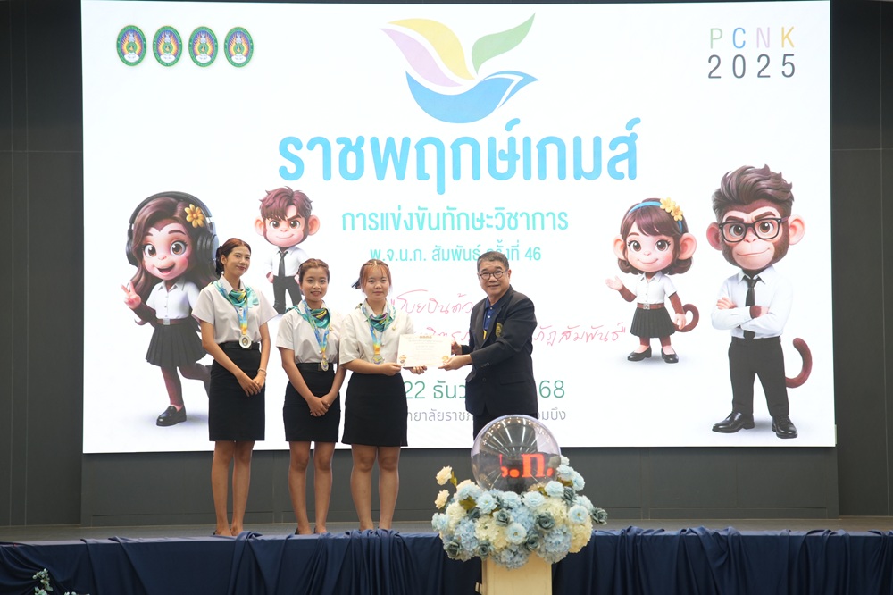วันที่ 22 ธันวาคม 2568 ผู้ช่วยศาสตราจารย์ อรรถพล อุสายพันธ์ รักษาราชการแทนอธิการบดีมหาวิทยาลัยราชภัฏหมู่บ้านจอมบึง พร้อมด้วย ผู้ช่วยศาสตราจารย์ ดร.ชัชวาล แอร่มหล้า รองอธิการบดี ให้เกียรติมอบเหรียญรางวัลการแข่งขันทักษะวิชาการ พ.จ.น.ก. สัมพันธ์ ครั้งที่ 46 “ราชพฤกษ์เกมส์” ในการแข่งขันแต่ละรายการ ช่วงภาคเช้า