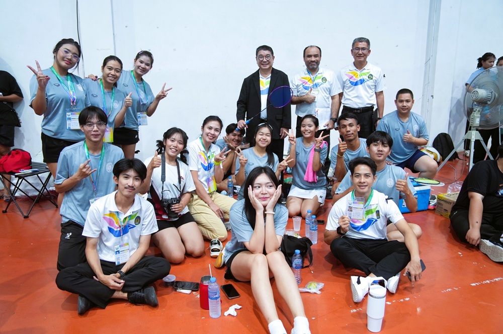 ผู้บริหารมหาวิทยาลัยราชภัฏหมู่บ้านจอมบึง ลงพื้นที่เยี่ยมให้กำลังใจนักกีฬา “ราชพฤกษ์เกมส์” วันแรก บรรยากาศคึกคัก