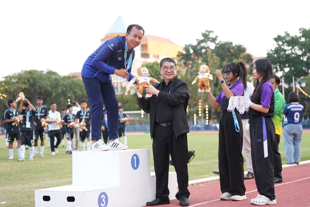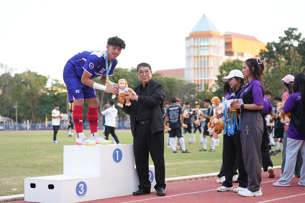 ผศ.อรรถพล อุสายพันธ์ มอบเหรียญรางวัลการแข่งขันกีฬาฟุตบอล ณ สนามฟุตบอลมหาวิทยาลัยราชภัฏหมู่บ้านจอมบึง