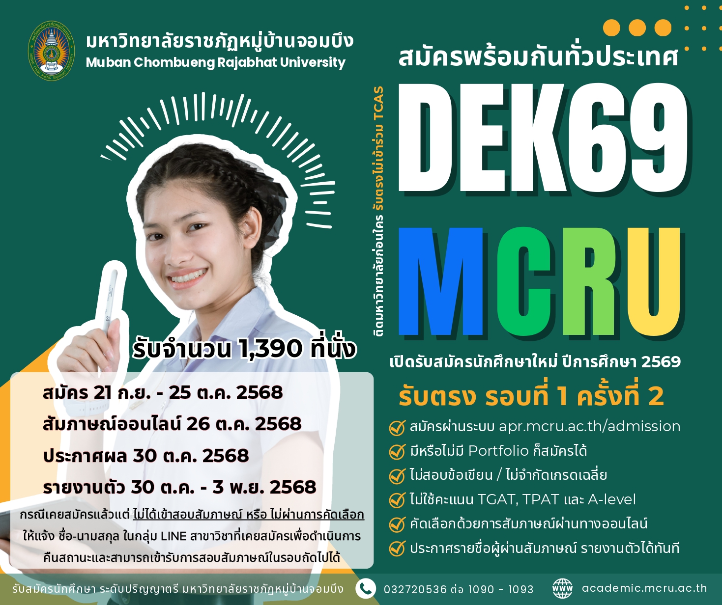 🔗 เว็บไซต์สมัครเรียน ปีการศึกษา 2569 คลิก! https://apr.mcru.ac.th/admission