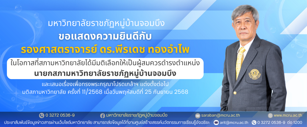 มหาวิทยาลัยราชภัฏหมู่บ้านจอมบึง ขอแสดงความยินดีกับ รศ.ดร.พีรเดช ทองอำไพ ในโอกาสที่สภามหาวิทยาลัยได้มีมติเลือกให้เป็นผู้สมควรดำรงตำแหน่ง นายกสภามหาวิทยาลัยราชภัฏหมู่บ้านจอมบึง