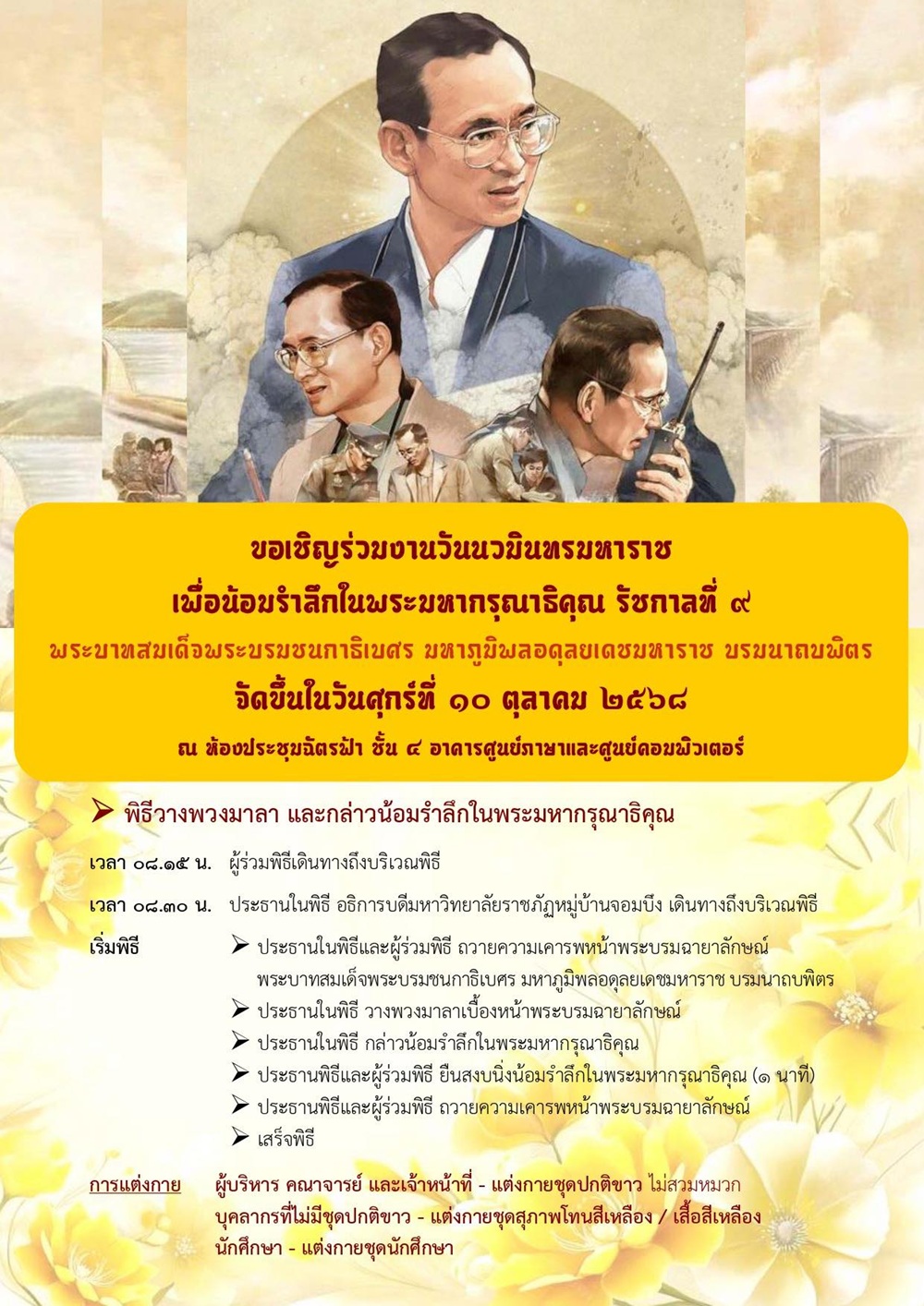 สำนักศิลปะและวัฒนธรรม ขอเชิญร่วมงาน “วันนวมินทรมหาราช” น้อมรำลึกในพระมหากรุณาธิคุณ รัชกาลที่ 9