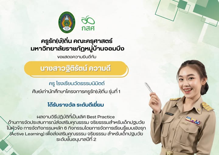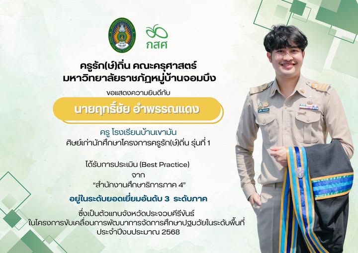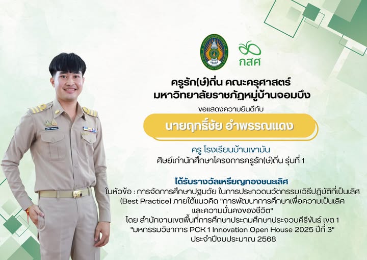 มหาวิทยาลัยราชภัฏหมู่บ้านจอมบึง ขอแสดงความยินดีกับศิษย์เก่าครูรัก(ษ์)ถิ่น