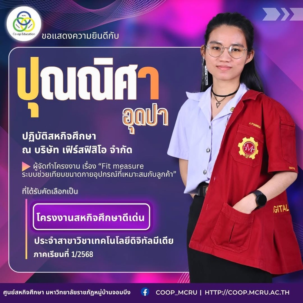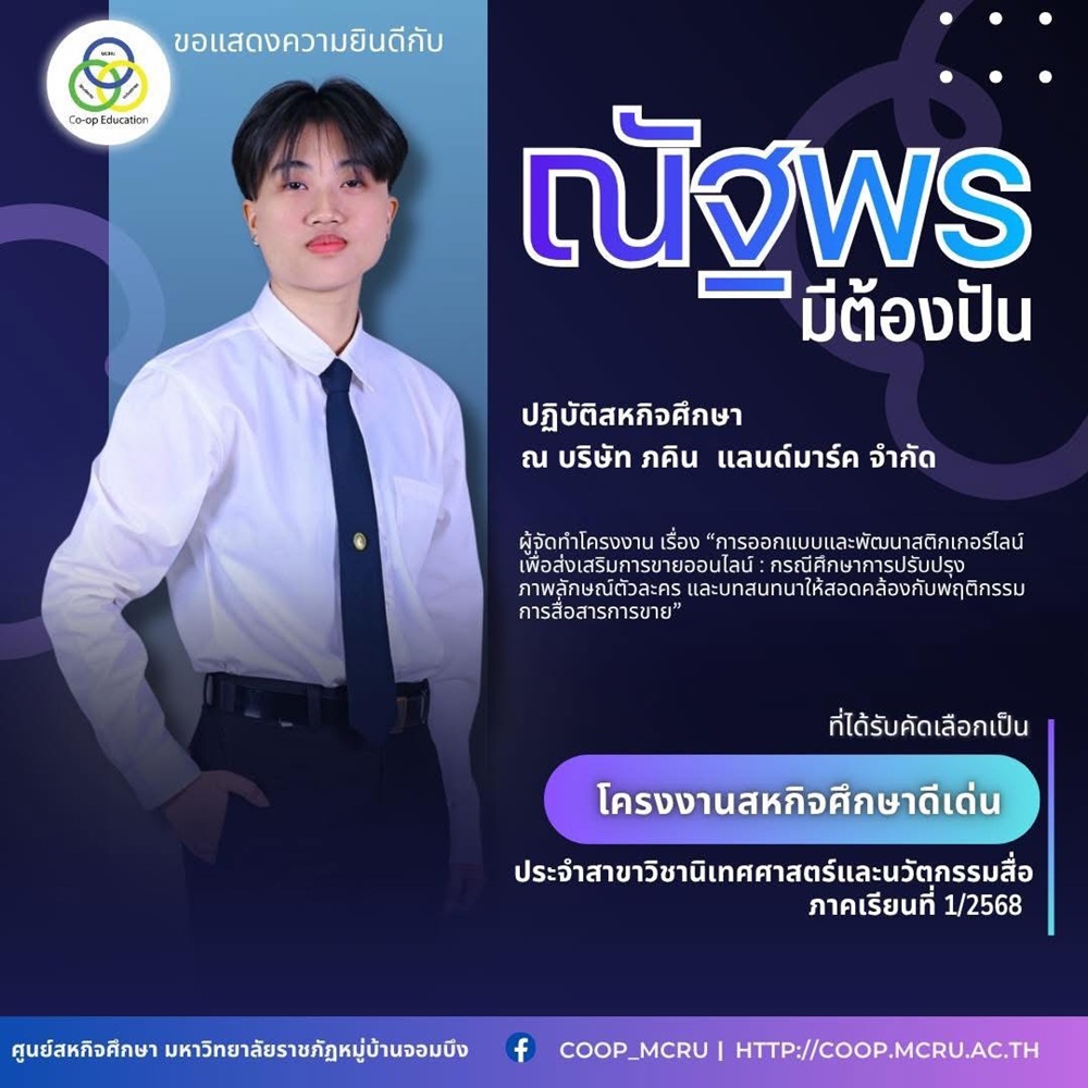 ศูนย์สหกิจศึกษา มหาวิทยาลัยราชภัฏหมู่บ้านจอมบึง ขอเชิญชวน ผู้บริหาร อาจารย์ บุคลากร และนักศึกษาสหกิจศึกษา เข้าร่วมโครงการ “ปัจฉิมนิเทศนักศึกษาสหกิจศึกษา ภาคเรียนที่ 1 ปีการศึกษา 2568”