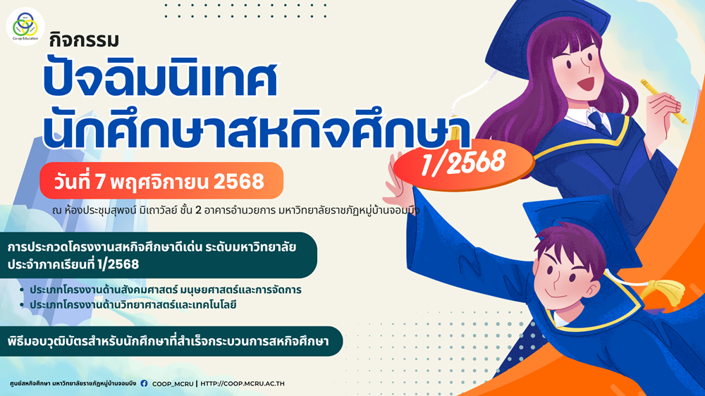 ศูนย์สหกิจศึกษาขอเชิญเข้าร่วมโครงการ “ปัจฉิมนิเทศนักศึกษาสหกิจศึกษา ภาคเรียนที่ 1 ปีการศึกษา 2568”