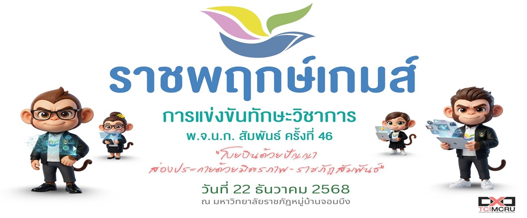 มหาวิทยาลัยราชภัฏหมู่บ้านจอมบึง ขอเชิญร่วมชมและร่วมเป็นกำลังใจให้กับนักศึกษาในการแข่งขัน ทักษะวิชาการ พ.จ.น.ก.สัมพันธ์ ครั้งที่ 46 “ราชพฤกษ์เกมส์” ซึ่งจะจัดขึ้นในวันที่ 22 ธันวาคม 2568 ณ มหาวิทยาลัยราชภัฏหมู่บ้านจอมบึง