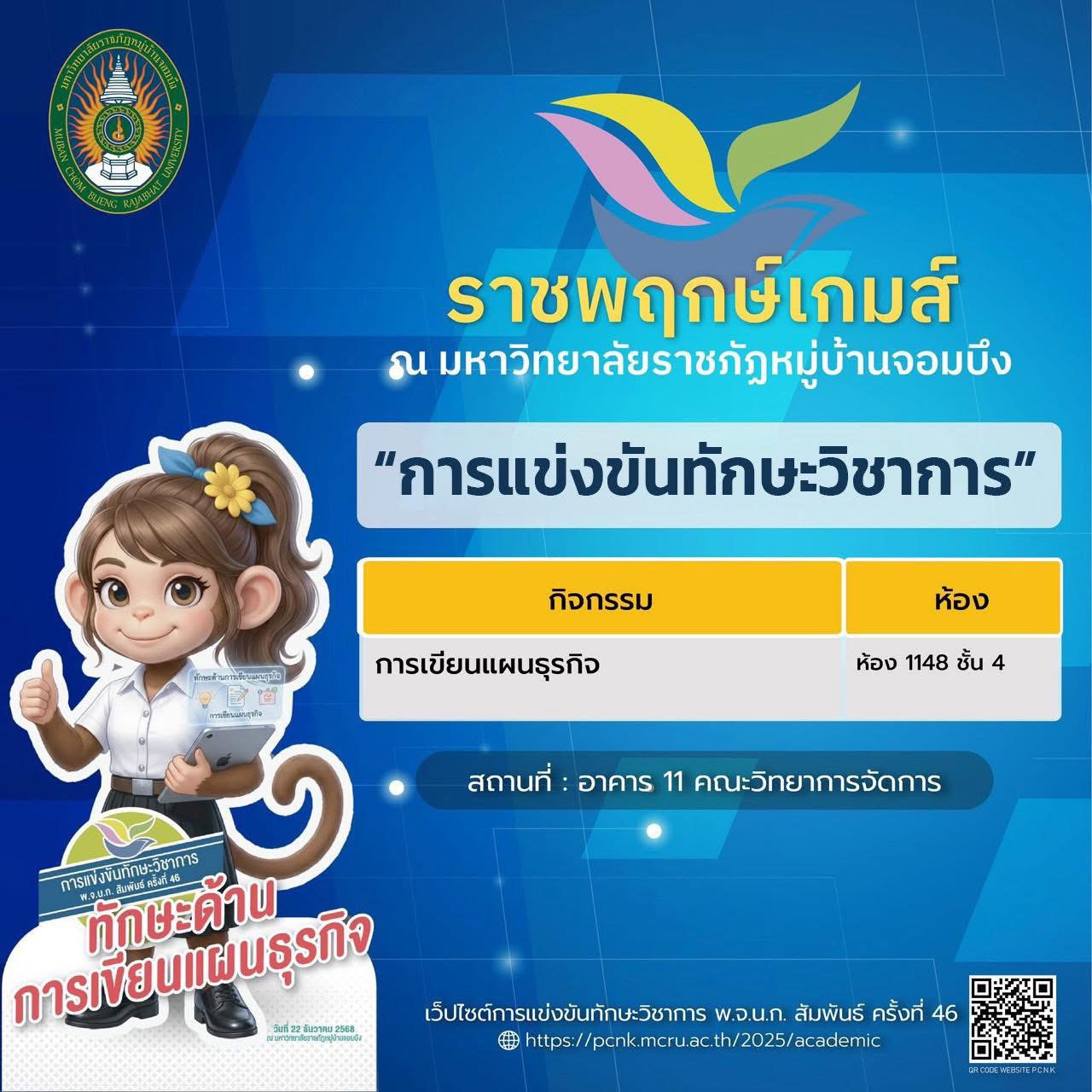 มหาวิทยาลัยราชภัฏหมู่บ้านจอมบึง ขอเชิญร่วมเป็นส่วนหนึ่งของบรรยากาศแห่งพลัง ความสามารถ และความภาคภูมิใจ กับ การแข่งขันทักษะวิชาการ พ.จ.น.ก. สัมพันธ์ ครั้งที่ 46 ภายใต้ชื่อ “ราชพฤกษ์เกมส์” 🗓 วันที่ 22 ธันวาคม 2568 📍 ณ มหาวิทยาลัยราชภัฏหมู่บ้านจอมบึง