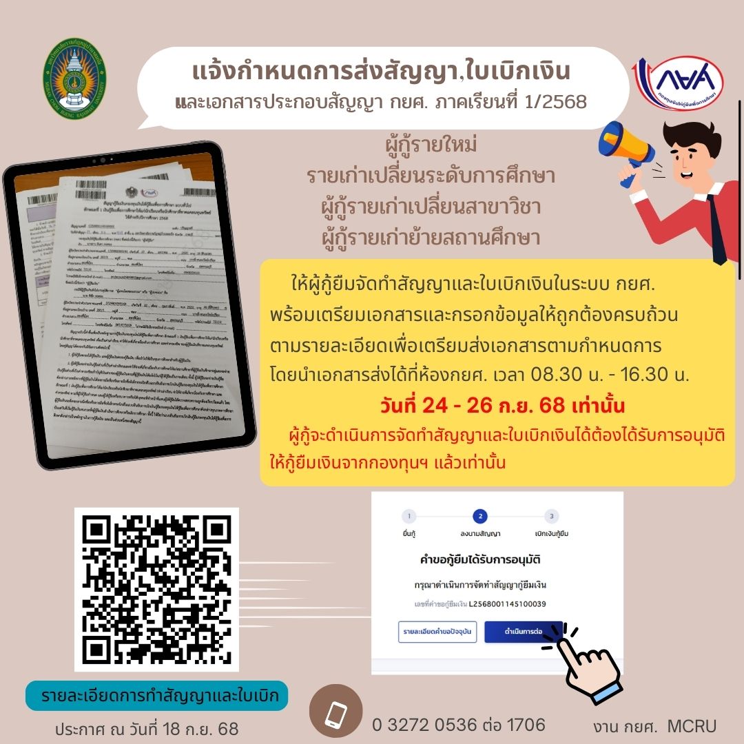 ประกาศกำหนดการจัดทำสัญญารายใหม่และรายเก่าเปลี่ยนระดับการศึกษา ประจำปีการศึกษา 2568