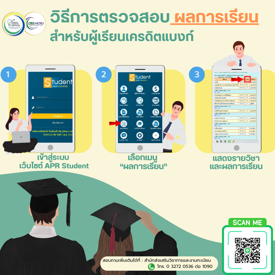 สำนักส่งเสริมวิชาการและงานทะเบียน มหาวิทยาลัยราชภัฏหมู่บ้านจอมบึง ขอประชาสัมพันธ์ ขั้นตอนการตรวจสอบผลการเรียนสำหรับผู้เรียนในระบบธนาคารหน่วยกิต (CBS) ดังนี้