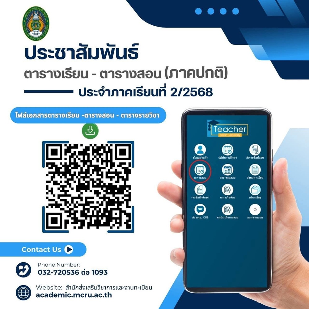 ☎️ สอบถามรายละเอียดเพิ่มเติมได้ที่ สำนักส่งเสริมวิชาการและงานทะเบียน โทร. 032-720536 ต่อ 1093 🌐 เว็บไซต์: academic.mcru.ac.th